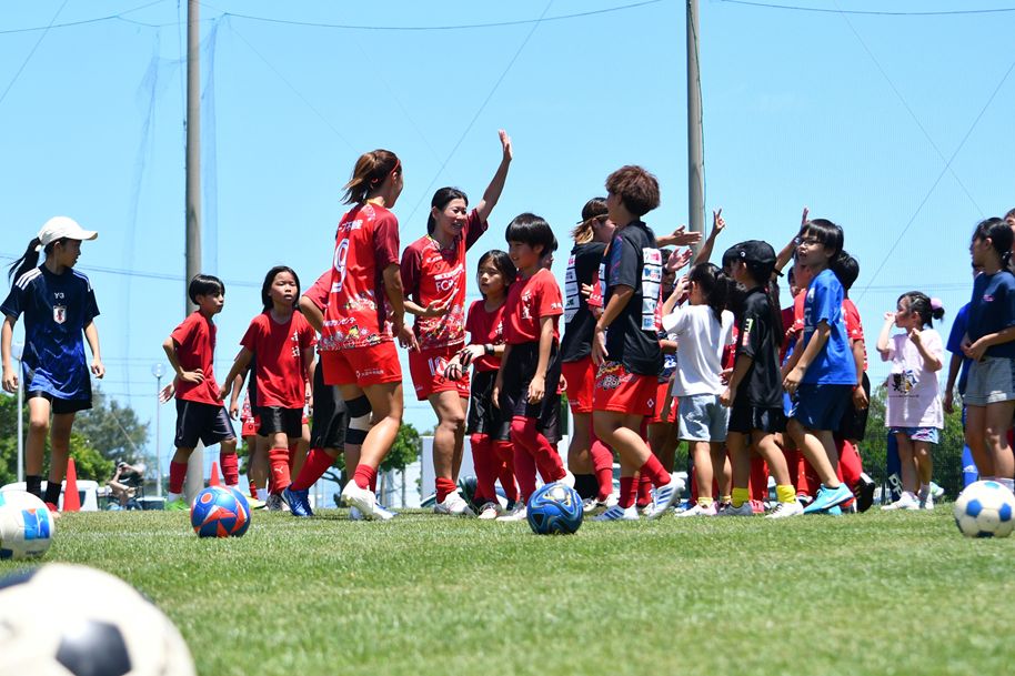 沖縄の未来をつくる女子チーム」として2024シーズンに発足。選手たちは企業で働き、サッカーの練習にも取り組む“二刀流”生活を送っています。2025シーズンは、KYFA九州女子サッカーリーグにおいて準優勝。目標であるなでしこリーグ参入を実現すべく、2026シーズンはリーグ優勝を目指します。また、子ども食堂やサッカー教室、保育園・幼稚園訪問など、地域に根差した活動にも積極的に取り組んでいます。
