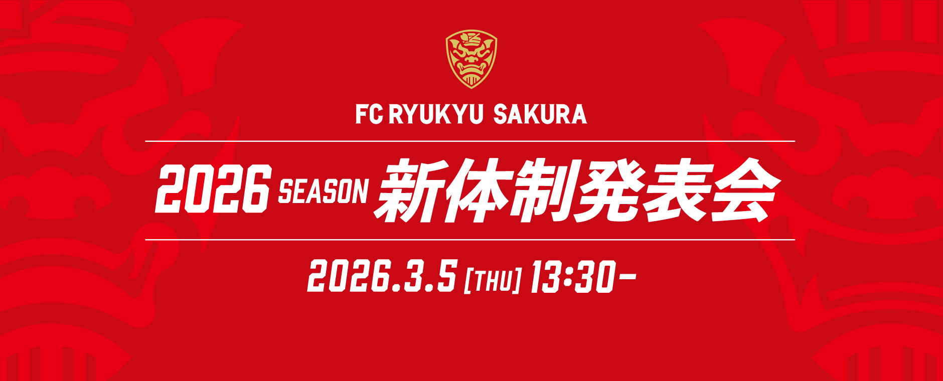 このたび、FC琉球さくら株式会社は、2026シーズンにおける新体制発表会を2026年3月5日(木)にロワジールホテル沖縄にて開催することとなりました。ファン・サポーターの皆さまにもご参加していただけるお席をご用意いたしましたので、下記お知らせいたします。