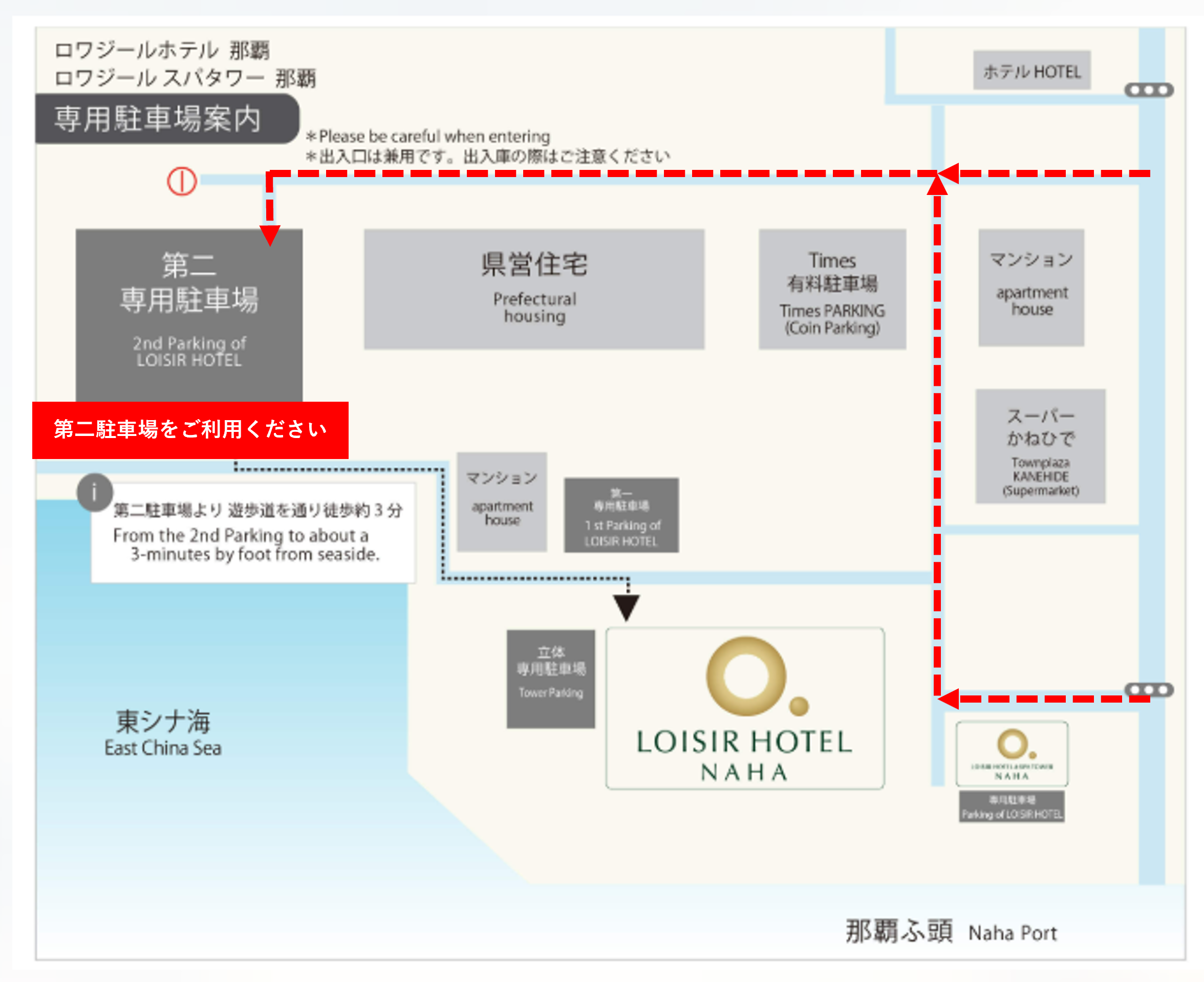 ※駐車場ご利用の場合は、第二駐車場(以下画像参照)をご利用ください。